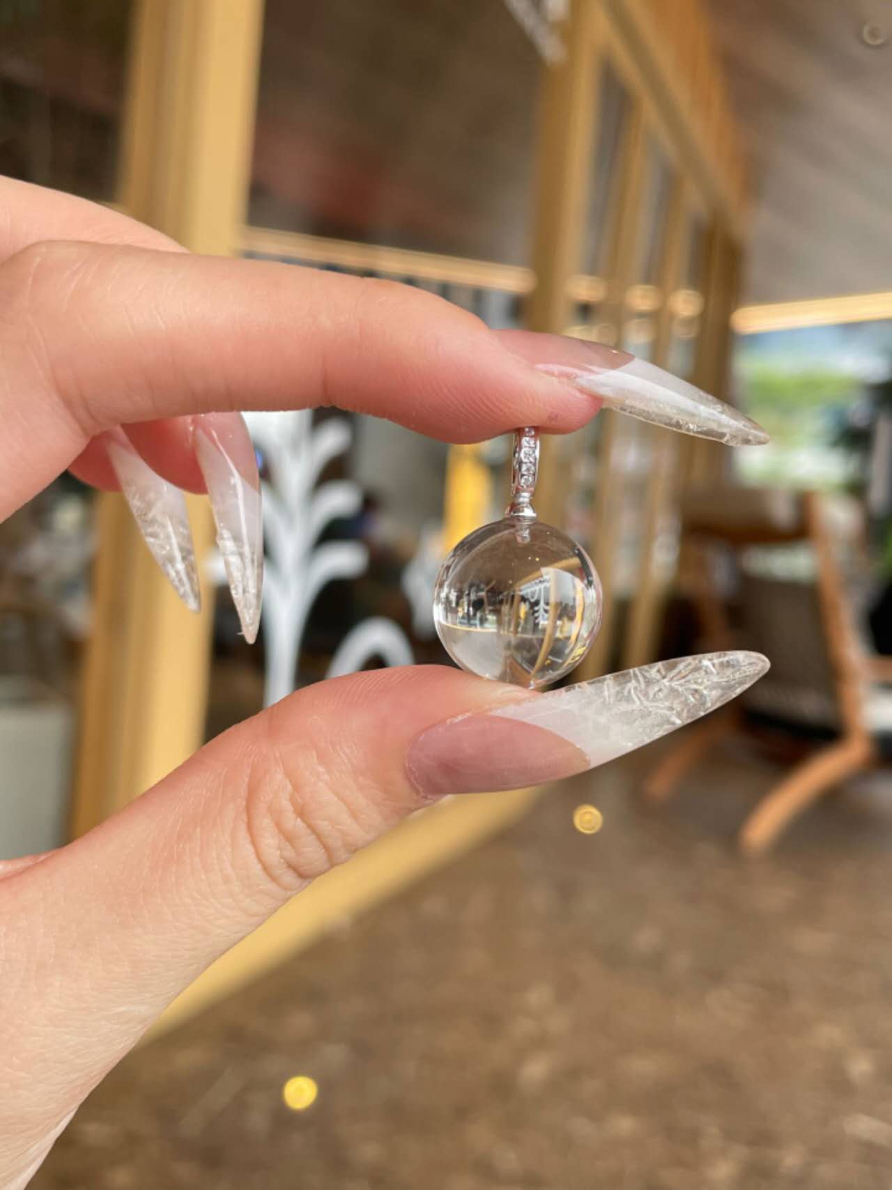 Clarity Drop features a luminous clear quartz crystal sphere paired with a delicate 925 sterling silver chain. This minimalist pendant embodies serenity, purity, and energetic balance.
